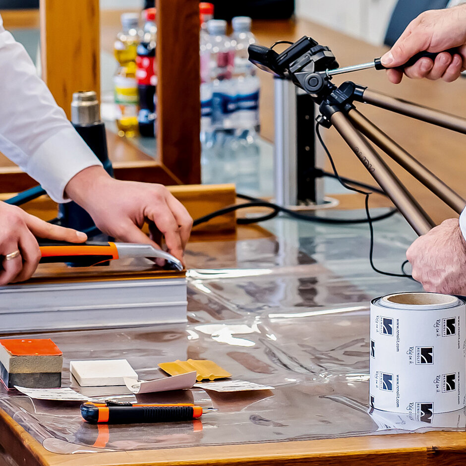 Neben den bekannten Tagesseminaren am Standort Worms bietet die Abteilung diese Wissensvermittlung jetzt auch als Online-Seminar an. Der Abschluss ist gleichwertig mit dem der Präsenzveranstaltung: Die Teilnehmer erhalten ein Zertifikat, das sie zum Bezug und zur Verarbeitung der Reparaturfolien ermächtigt. Auf diese Weise sind die Unternehmen als Partner von Bauherren und Architekten unmittelbar vor Ort handlungsfähig.
