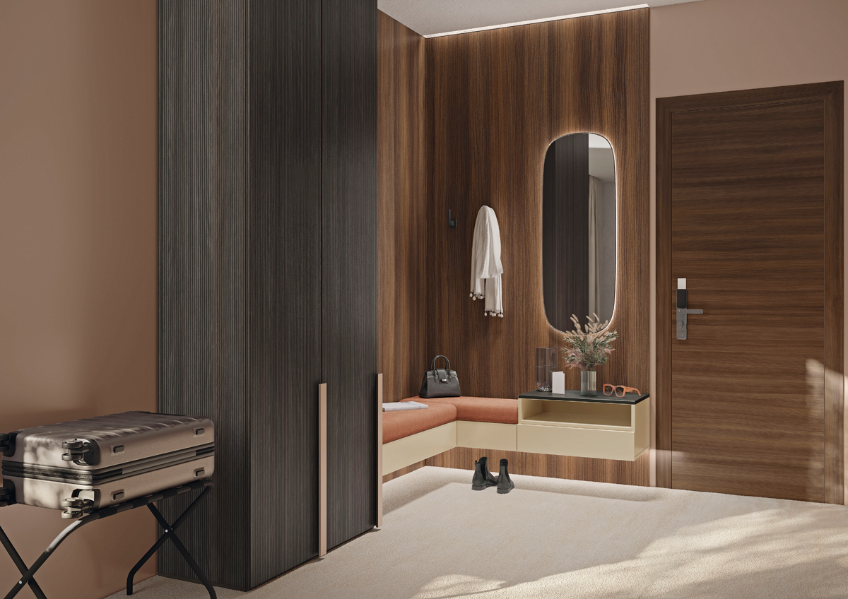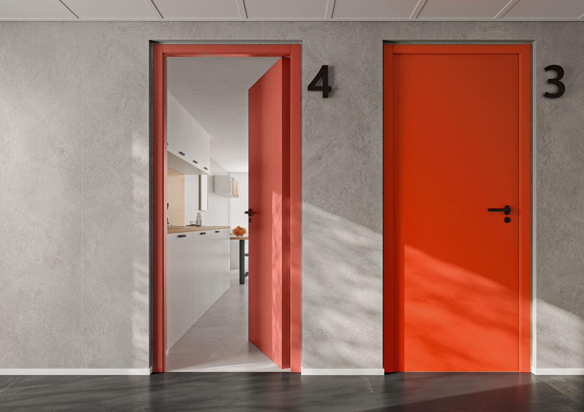 HPL-Oberflächen von Resopal sind mit ihren hochwertigen Eigenschaften ein ideales Material für Türen: Sie sind kratz- und stoßfest, langlebig, einfach zu reinigen und antibakteriell. Dank der großen Farb- und Designvielfalt bietet Resopal zahlreiche Möglichkeiten, um Türen – und damit Räume – zu gestalten, egal ob in der Hotel- und Gastronomiebranche, im Privathaus, im Bildungs- oder im Gesundheitswesen.