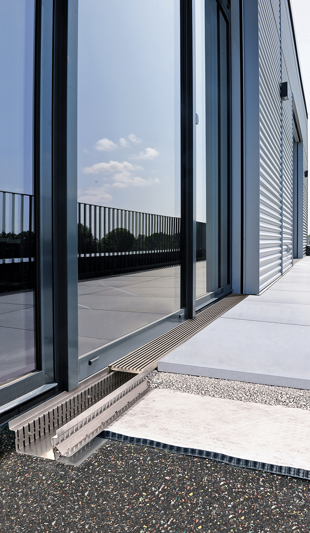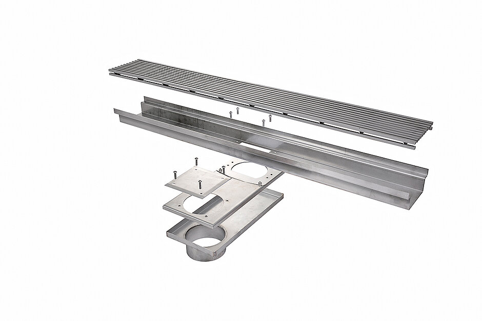 Der als Zubehör für Entwässerungsrinnen des Metallwarenherstellers entwickelte Laibungsablauf kommt immer dann zum Einsatz, wenn ein direkter Rinnenanschluss im Laibungsbereich über einen Stutzen unterhalb der Rinne nicht möglich ist. Dies ist vor allem in Fenster- und Türbereichen aufgrund der Laibungstiefe der Fall. Der durchdachte Laibungsablauf schafft als Erweiterung von Entwässerungssystemen einen revisionierbaren Rohranschluss, welcher dank seiner Bauform den Laibungsbereich überbrücken kann.