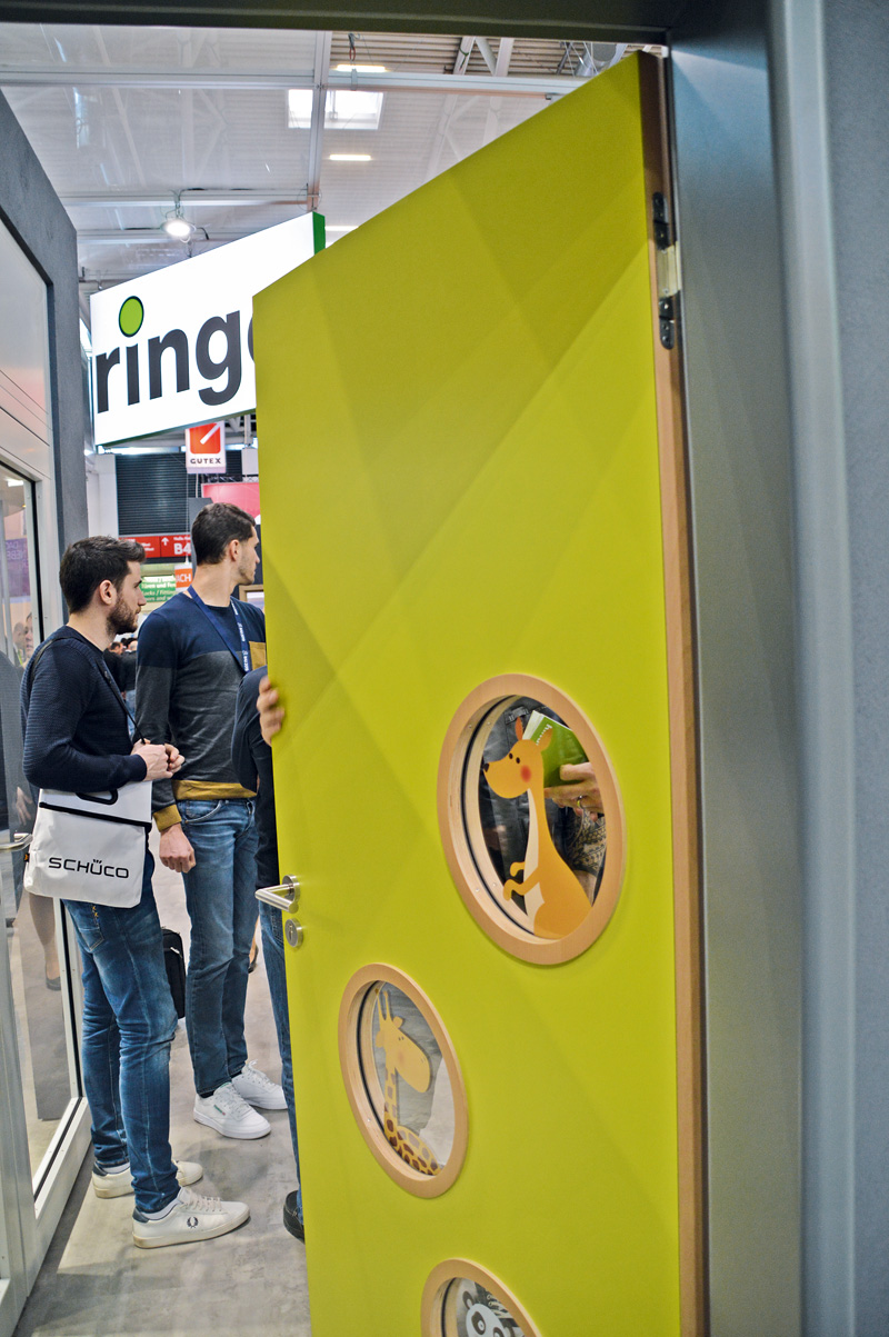 Die verschiedenen Zusatzausstattungen wie Feuchtraum-Tauglicheit und Brandschutz, die laut Stefanie Röttgers auch für mehrflügelige Anlagen verfügbar sind, ermöglichen überdies einen Designverbund mit den herkömmlichen Wohnraumtüren. Am Messestand von Ringo war eine Garagen-Nebentür zu sehen, gefertigt aus Kunststoff und Lack und damit geeignet für Feuchträume. Auch dieses Modell ist in verschiedenen Oberflächen und Ausstattungen wie höherer Einbruchschutzklasse individualisierbar.