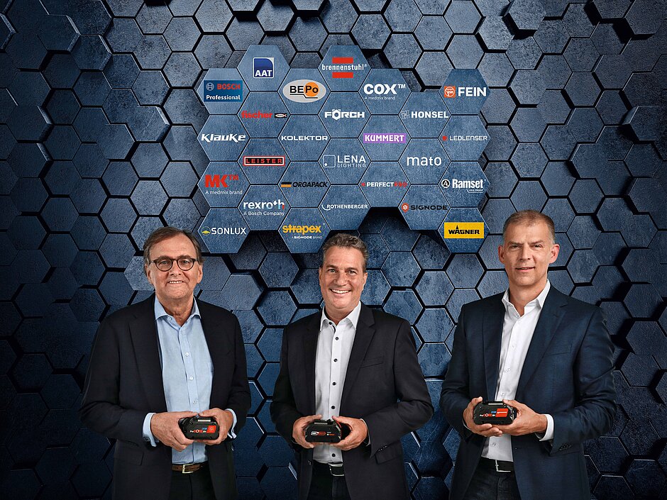 Mitglieder der neuen AmpShare-Allianz sind ab sofort auch Fischer ‒ technologischer Weltmarktführer in wichtigen Feldern der Befestigungstechnik, AAT Alber Antriebstechnik GmbH – Hersteller von elektrischen Treppensteigsystemen, Bepo ‒ Spezialist für Fräsen- und Fugenschneider zur Montage und Fenstersanierung, Förch ‒ Anbieter von Elektrowerkzeugen für die Gewerke Bau, Holz, Metall und Haustechnik sowie für den Nutzfahrzeug- und Kraftfahrzeugbereich, Honsel ‒ Experte für innovative Niet- und Befestigungslösungen, Kolektor ‒ Experte für kabellose Multifunktions-Drucksprühgeräte, Kummert ‒ ein führender Hersteller für Kanalinspektionssysteme, Leister ‒ führend in Kunstoffschweiß- und Prozesswärme-Lösungen, Mato ‒ Experte für Schmiertechnik, Signode, Orgapack und Strapex ‒ Verpackungsexperten mit Umreifungswerkzeugen, PerfectPro ‒ ein führender Anbieter von Baustellenradios, und Rexroth ‒ Spezialist für prozesssichere Schraublösungen. Darüber hinaus stellt Medmix neben der Serie Cox auch die Serie MK auf die AmpShare-Schnittstelle um. „300 Maschinen, mehr als 25 Marken, ein Akku: Ende nächsten Jahres wollen wir Ihnen als AmpShare-Allianz bereits über 300 kompatible Geräte bieten, da-von allein 50 neue 18 Volt-Geräte von Bosch Professional, mit denen wir unser eigenes Portfolio nochmals erweitern“, so Henk Becker. Weitere Hersteller sollen folgen.