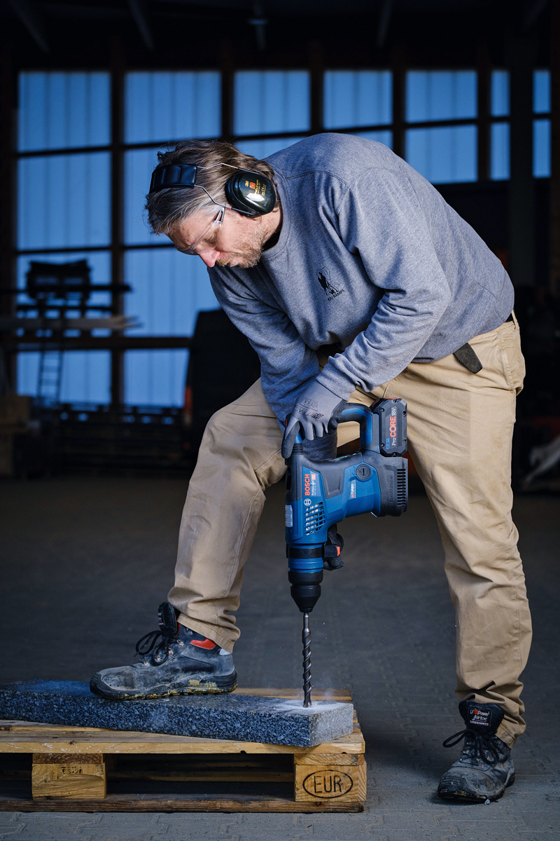 »Um sich als Skater und Skateparkbauer neue Räume zu erobern, braucht man Ehrgeiz und Ausdauer – Letzteres gilt auch für das Werkzeug. Es gibt Projekte, bei denen ich ausschließlich Akku-Werkzeuge einsetzen muss. Die mobile Baustelle ist daher ein ganz, ganz wichtiges Thema«, erklärt Andreas Schützenberger. Auf dem Weg zur Unabhängigkeit setzt er auf höchstmögliche Leistung: Für den Bau einer mobilen Rampe, die die hängende Halfpipe in seiner Werkstatt ergänzen soll, nutzt er heute erstmals Biturbo-Werkzeuge von Bosch. Sie stehen für eine neue Generation Akku-Werkzeuge: Winkelschleifer, SDS-max-Hämmer und Sägen wie Handkreissäge, Tauchsäge sowie Kapp- und Gehrungssäge sind für Höchstleistung mit ProCore18V-Akkus optimiert und dadurch leistungsstärker als alle bisherigen Akku-Werkzeuge von Bosch. Grundlage hierfür ist eine optimale Abstimmung ihres bürstenlosen Hochleistungsmotors mit Elektronik und Akku, sodass die Hochleistungsströme – und somit das gesamte Potenzial der Pro-Core18V-Akkus mit 8,0 und 12,0 Ah – ausgeschöpft werden können. Dadurch seien besonders leistungsintensive Anwendungen möglich.