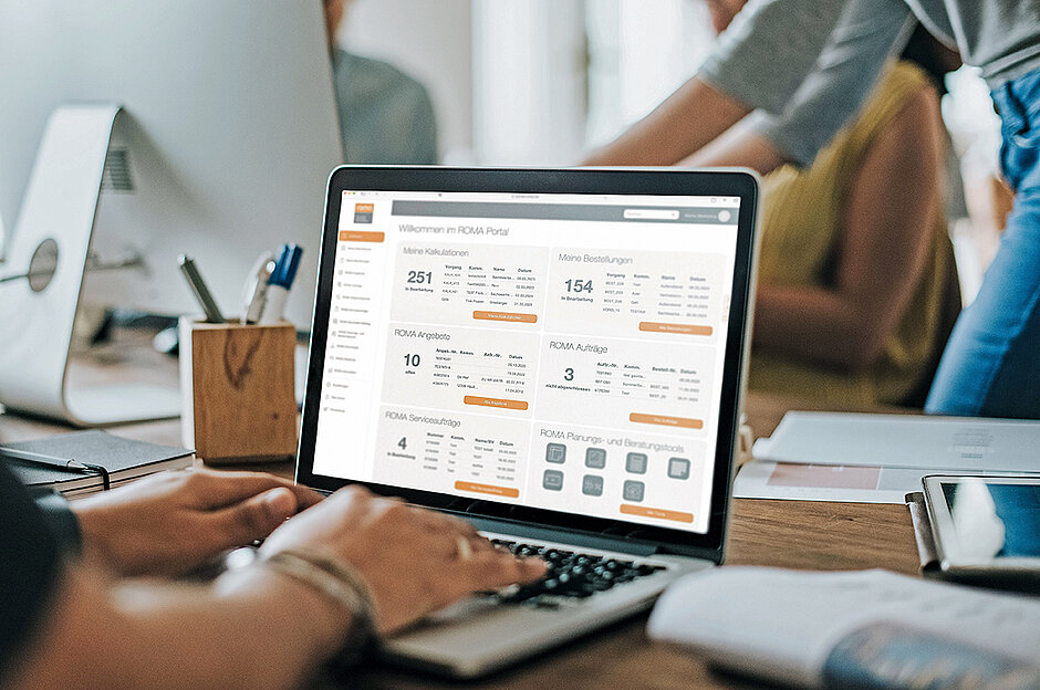Das Portal ermöglicht laut Roma eine unkomplizierte Auftragsabwicklung von Kalkulation für Angebote mit Endkundenmodus für das Beratungsgespräch über Online-Bestellung bis hin zur Übersicht der Liefertermine – alle digitalen Anwendungen sind zentral an einem Ort vereint.