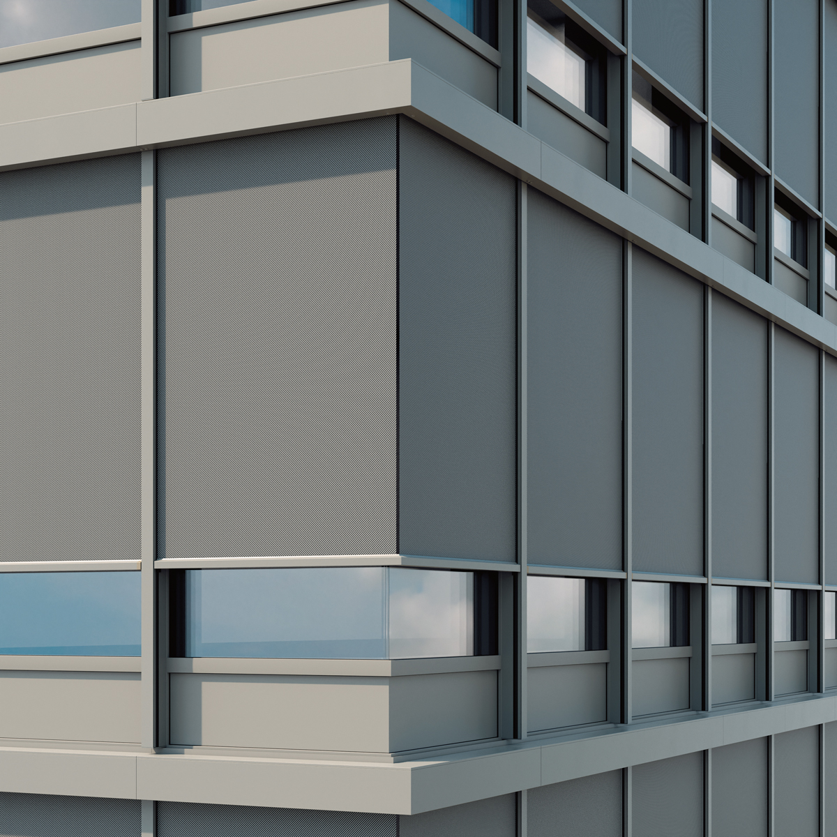 Mit dem »zipScreen F50« Fassadentextilscreen von Roma gelingt die elegante und komfortable Integration von textilem Sonnenschutz in unterschiedlichste Fassaden. Durch eine Befestigungslösung, die komplett hinter den Führungsschienen verschwindet, ist die Planung und Montage nach Aussage von Roma denkbar einfach. Dadurch fügt sich der »zipScreen F50« nahtlos in Pfosten-Riegel-Fassaden ein. Diese schlichte Eleganz und das geschlossene Erscheinungsbild wurden mit dem Red Dot Award 2022 für Product Design ausgezeichnet.