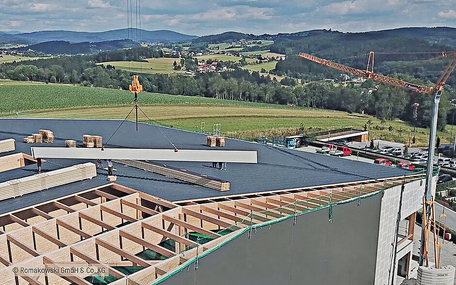 Der Umwelt zuliebe: Auf dem Gelände der Firma Penzkofer Bau in Regen ist im Sommer dieses Jahres eines der ersten Projekte realisiert worden, in dem ausschließlich Sandwichpaneele zum Einsatz kamen, die mit dem nachhaltigen »Biomass-Balance«-System der BASF hergestellt wurden. Die Paneele mit »BASF-Elastopir«-Kern stammen aus dem Werk von Roma Dämmsysteme in Buttenwiesen.