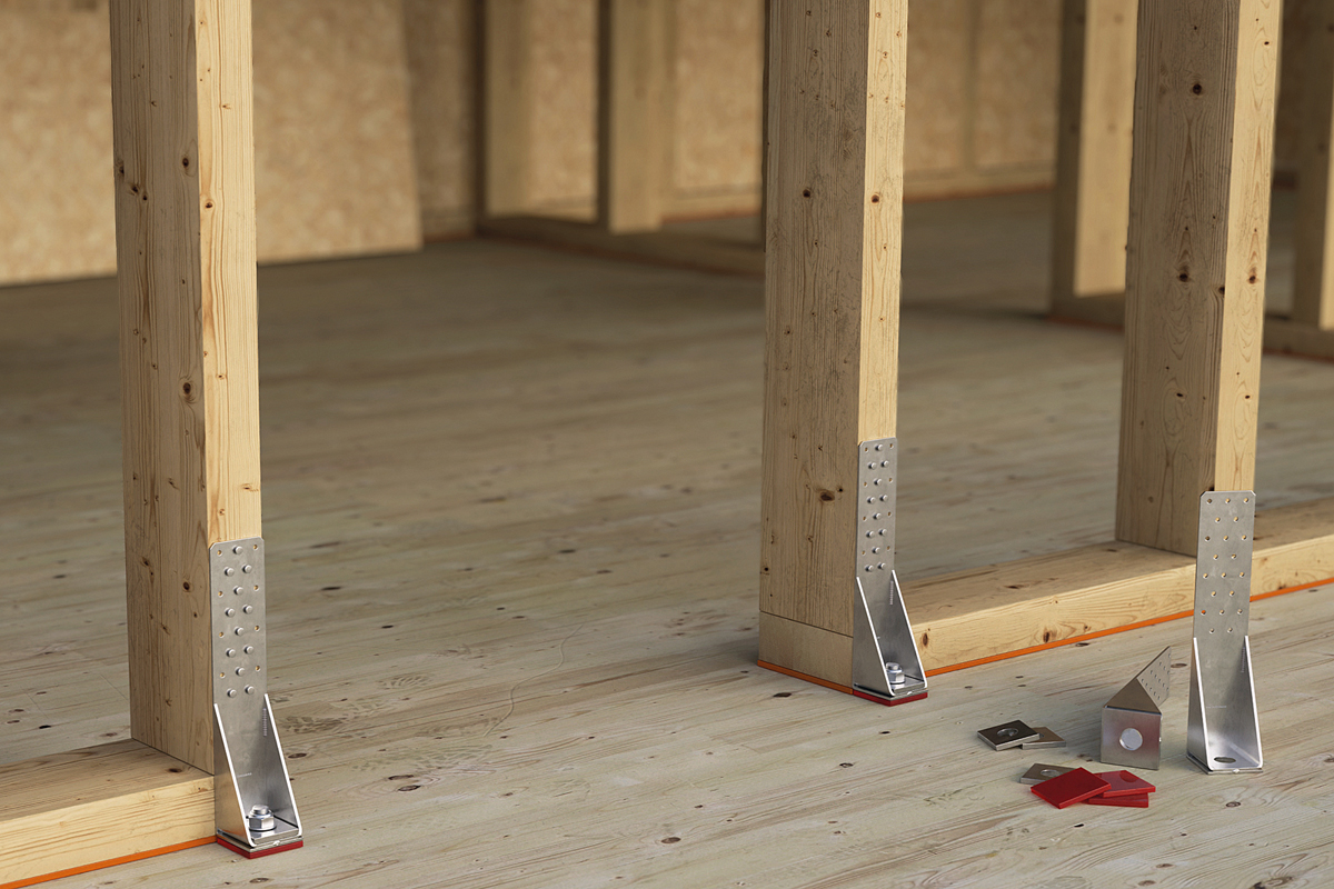 Der »WHT« eignet sich auch bei seismischen Belastungen für die statische Befestigung von Wänden aus Massiv- und Brettschichtholz, in Holzrahmenbauweise, Brettsperrholz- und Furnierschichtholzplatten. Die neue ETA-Zertifizierung erlaubt zudem bei Betonaufkantungen eine Abstandsmontage.