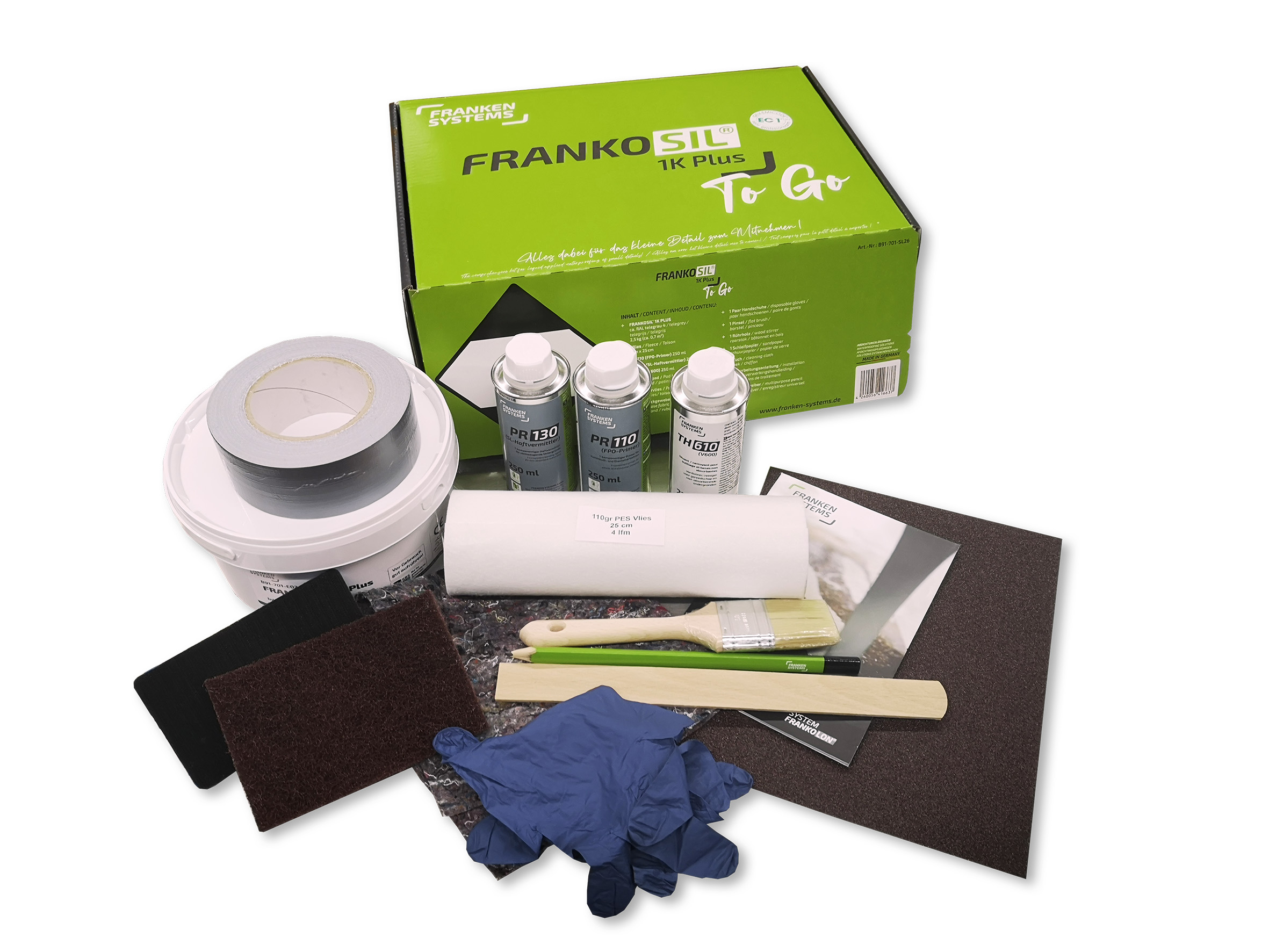 Mit dem Paket Frankosil to go von Franken Systems, das neben den beiden Primern für (fast) alle Untergründe weiteres Zubehör enthält, soll es Verbrauchern ermöglicht werden, das einkomponentige System Frankosil 1K Plus sicher verarbeiten zu können.