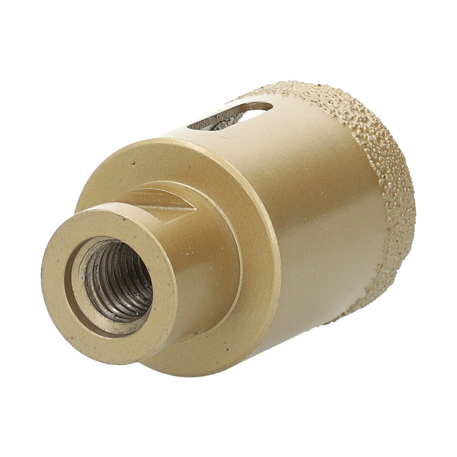 Mit der Bohrkrone »Extreme VB« hat Norton Clipper eine vakuumgelötete Diamantbohrkrone auf den Markt gebracht, mit der Trockenbohrungen selbst durch harte Keramikfliesen, Natursteine oder sogar Feinsteinzeug mühelos gelingen. Mit der innovativen Bohrkrone kann sowohl trocken als auch nass gearbeitet werden. Bei einer Nutzlänge von 50 mm und einer Segmenthöhe von 7 mm gibt es 24 verschiedene Ausführungen – in Durchmessern von 6 bis 132 mm. Eingesetzt werden kann die »Extreme VB« auf einem herkömmlichen Winkelschleifer. Zur schnellen und einfachen Montage ist das Werkzeug mit einem M14-Anschluss ausgestattet. Mit sauberen Bohrlöchern, einer hohen Bohrgeschwindigkeit und hervorragenden Standzeit trägt die »Extreme VB« in besonderem Maße zu makellosen sowie wirtschaftlichen Fliesenarbeiten bei.