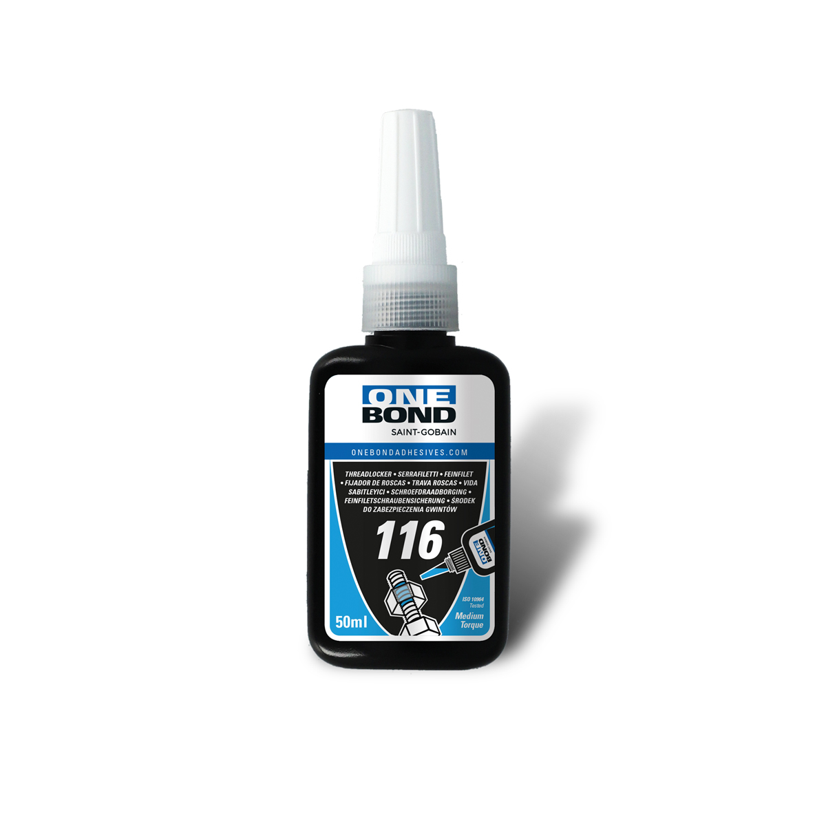 Mit »OneBond 116« steht ab sofort eine ungiftige, mittelstarke und mittelviskose Gewindesicherung zur Sicherung von Muttern und Schrauben zur Verfügung, die möglicherweise demontiert werden müssen. Geeignet ist die blaue Gewindesicherung mit mittlerem Drehmoment für einen Temperaturbereich von -55 °C bis +200 °C. Sie lässt sich laut Hersteller leicht und mit nur geringem Abfluss auf vertikale Flächen auftragen und ist hochgradig beständig gegen Vibrationen, Hitze, Korrosion, Wasser, Gas, Öle, Kohlenwasserstoffe und Chemikalien. Selbst auf öligen Oberflächen erfüllt das nachgewiesen gesundheitlich unbedenkliche Mittel zuverlässig seinen Dienst, verspricht Saint-Gobain Abrasives. »OneBond 116« benötigt eine Abbindezeit von nur 15 Minuten und ist nach 24 Stunden vollständig ausgehärtet.