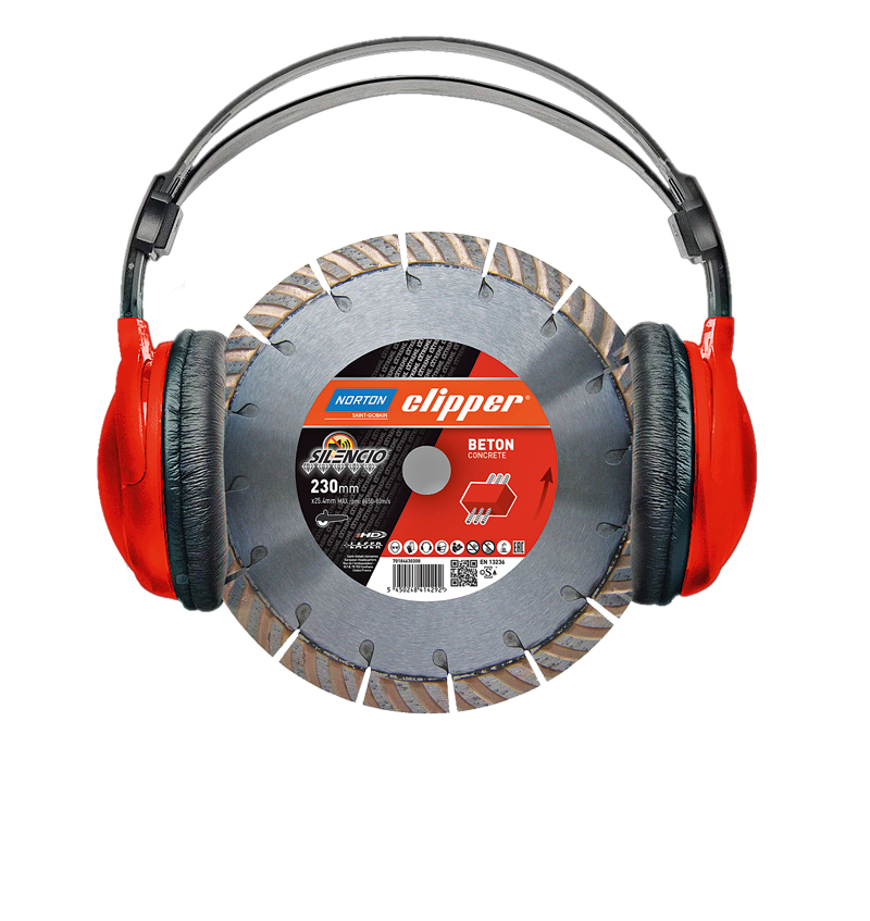 Mit der schallgedämpften Diamantscheibe »Norton Clipper Silencio« ist der Profi am Bau in Sachen Schallschutz für Mensch und Umwelt auf dem neuesten Stand der Technik. Aufgrund konstruktiver Vorteile reduzieren die mit zehn Innovations- und Sicherheitspreisen ausgezeichneten Diamantscheiben laut Norton Clipper gegenüber herkömmlichen Werkzeugen den Schallpegel bis zu 25 dB.