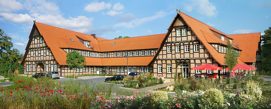Mit einer Nutzfläche von fast 3.400 m2 und einer Straßenfront von rund 35 m Länge gehört auch der „neue“ Dorfkrug zu den größten Fachwerkhäusern der Region. „Uns war es wichtig, den historischen Charakter des Gebäudes auf solch traditionsreichem Grund wiederherzustellen, im Innern aber gleichzeitig Wohn- und Geschäftsräume entstehen zu lassen, die höchsten Ansprüchen gerecht werden“, erklärt Eigentümer Günther Killer. „Dazu gehören sowohl sichtbare Balkenlagen und eine moderne Haustechnik als auch durchdachte Grundrisskonzepte und hochwertig ausgeführte Trockenbaukonstruktionen.“