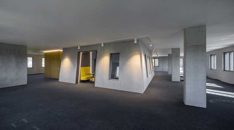 Unter dem Begriff „Additive Fertigung“ können sich bislang nur wenige Menschen etwas Konkretes vorstellen. Etwas vereinfacht ausgedrückt verbirgt sich dahinter industrieller 3-D-Druck, dessen Einsatzspektrum enorm vielfältig ist: Vom künstlichen Knie- oder Hüftgelenk bis zu anspruchsvollen Komponenten für die Luftfahrttechnik und den Automotive-Bereich lassen sich mit dieser Technologie aus verschiedenen Stoffen die benötigten Einzelstücke fertigen. Als hochspezialisierter Technologieführer in diesem Markt hat sich die 1995 gegründete FIT AG aus dem oberpfälzischen Lupburg bereits einen Namen gemacht. Nach Entwürfen des Architekturbüros Berschneider+Berschneider entstand für die Aktiengesellschaft ein neues Firmengebäude, das heute rund 200 Mitarbeitern Platz bietet. Im Innern des knapp 26 Meter hohen Gebäudes findet sich manche konstruktive Überraschung. Für den Ausbau des Bürogebäudes war Trockenbauexperte Aslani Muhidin verantwortlich.