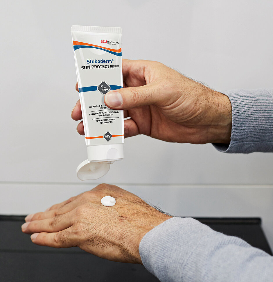 Dazu bietet sich etwa »Stokoderm Sun Protect 50 Pure« von SC Johnson Professional an – es handelt sich dabei um eine professionelle UV-Hautschutzlotion mit Lichtschutzfaktor 50, die zuverlässig vor den schädlichen Auswirkungen von UVA- und UVB-Strahlen schützt. Die UV-Hautschutzlotion ist wasserfest, duftstoff- und silikonfrei und genau auf die Anforderungen von Outdoor-Workern abgestimmt, so SC Johnson. Der Feuchtigkeitsspender Glyzerin verleiht dem Anwender ein angenehmes, geschmeidiges Hautgefühl. »Stokoderm Sun Protect 50 Pure« gibt es in praktischen Tuben oder als 1-Liter-Kartuschen, die sich mit dem »Proline«-Hautschutz Spender von SC Johnson Professional ganz einfach in Waschräumen, Ausgängen oder Aufenthaltsräumen anbringen lassen. J