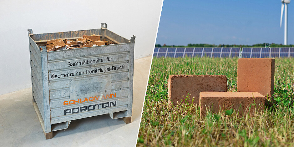 Bei Schlagmann Poroton wurde das »rote Gold« als Wertstoff bereits früh erkannt: Bereits seit 2016 bietet das Unternehmen ein eigenes Recycling-System an, bei dem auf Baustellen Container zum Sammeln von Ziegelbruch und -verschnitt zur Verfügung gestellt werden. Die sortenreinen Reststoffe, dazu zählt bei Schlagmann auch die Perlitfüllung der hochwärmedämmenden Poroton-Ziegel, werden danach zu hochwertigen Nebenprodukten weiterverarbeitet.