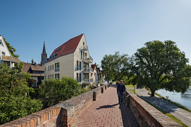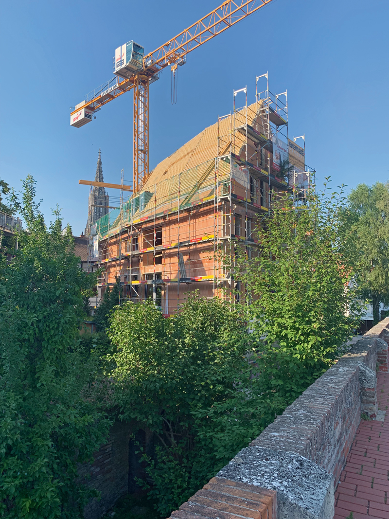 Eine Bebauung in dieser Lage bedeutete von Anfang an keine leichte Aufgabe. Zum einen steht man hier auf historischem Ulmer Boden, andererseits liefert ein Neubau an einer derart prominenten wie exponierten Stelle viel und vor allem heißen Diskussionsstoff.