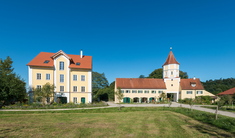 Wo früher Energie erzeugt wurde, zuerst als Mühle dann als Elektrizitätswerk, vibriert es heute förmlich voller Energie und Tatendrang seiner dreizehn neuen Bewohner. Seit Herbst 2019 wohnen vier Familien mit neun Kindern in dem Gebäude im Schlossensemble Blumenthal bei Aichach, das seit seiner Errichtung 1809 unterschiedlich genutzt wurde und in den letzten Jahren leer stand. Möglich machte dies eine gründliche Komplettsanierung nach hohem ökologischem Standard. Die Dämmung der gut erhaltenen Ziegel-Außenwände wurde aus Gründen des Denkmalschutzes als Innendämmung ausgeführt, die Wahl des Baustoffes fiel auf das keramische Wärmedämmsystem »Poroton-WDF«. Der moderne Baustoff von Schlagmann Poroton erfüllte die Vorgaben der Bauherren nach einer ökologischen wie auch bauphysikalisch einwandfreien Lösung. Ausschlaggebend war zudem, dass das Dämmsystem ein gesundes Raumklima schafft und sowohl in der Region als auch klimaneutral produziert wird.