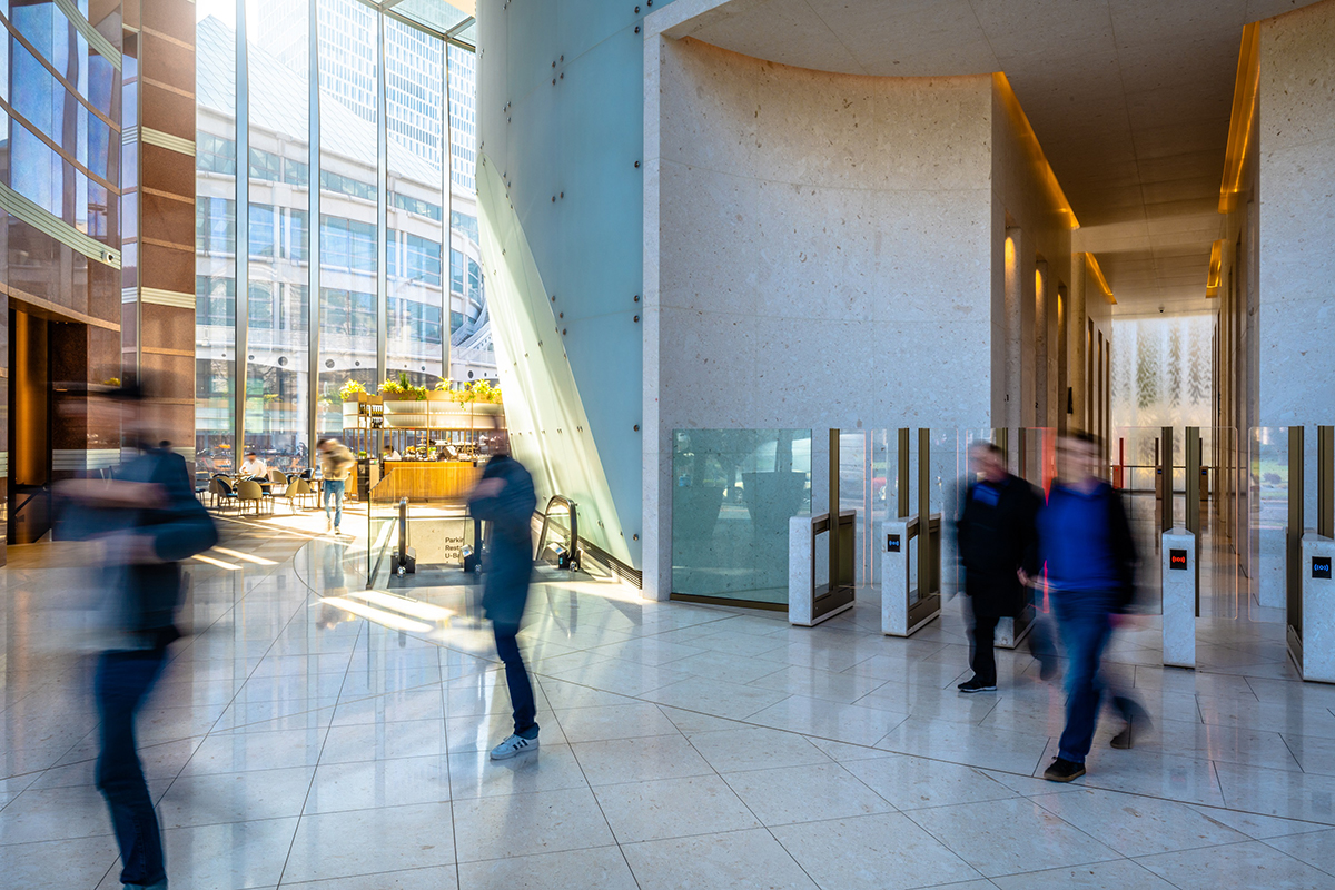 Im Rahmen der Sanierungsmaßnahme wurde der Lobbybereich des Frankfurter Wahrzeichens komplett umgebaut. Auf einer Fläche von rund 1.100 Quadratmetern ist dabei die energiesparende Fußbodenheizung Schlüter-BEKOTEC-THERM installiert worden – und das im laufenden Betrieb. Dabei wurde die Fläche, auf der das dünnschichtige System zum Einsatz kam, in vier Abschnitte unterteilt, die innerhalb weniger Tage fertiggestellt wurden. Gerade die geringe Aufbauhöhe des Systems war hier wichtig, da nicht viel Platz zur Verfügung stand, um Heizung, Estrich sowie den geplanten Belag einzubringen.