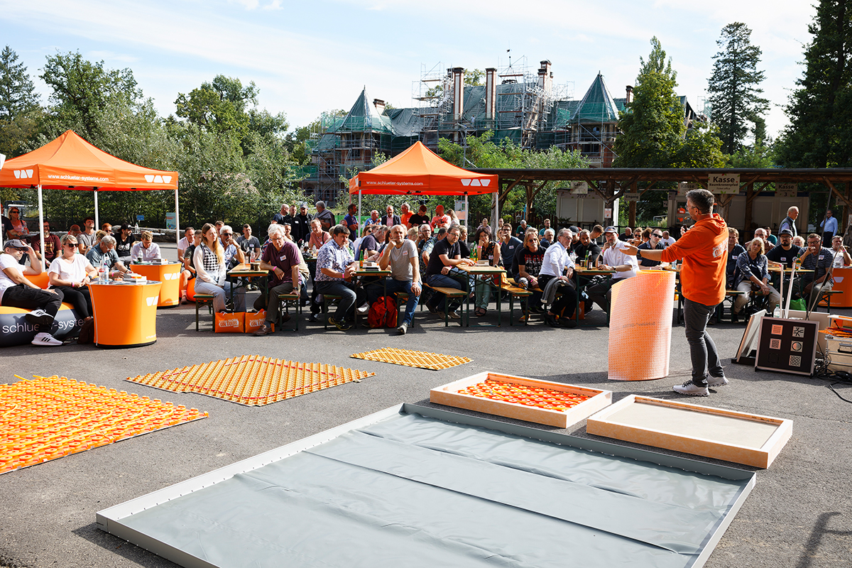 Zum Programm gehörte darüber hinaus die Erkundung des weitläufigen Areals der Beelitz-Heilstätten – entweder bei einer Führung über das Gelände oder einem Spaziergang auf dem Baumkronenpfad. Schlüter-Verkaufsleiter Jörg Hinze zog ein äußerst zufriedenes Fazit des zweitätigen Events: „Das durchweg positive Feedback der Besucherinnen und Besucher zeigt, dass der Mix aus dieser einzigartigen Kulisse und unserem Programm aus kompakter Ausstellung, kurzweiligen Präsentationen und persönlichem Austausch in entspannter Atmosphäre sehr gut ankommt. Das Interesse an unseren Systemlösungen, insbesondere an den energieeffizienten Flächenheizungen, war sehr groß, und wir haben viele gute und interessante Gespräche führen können.“
