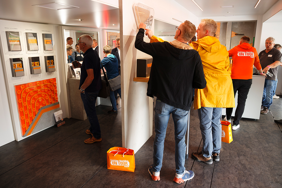 Mitte September hat die Schlüter-WorkBox on Tour Station an den Beelitz-Heilstätten südwestlich von Berlin gemacht. Vor dieser Kulisse konnte Schlüter-Systems an zwei aufeinanderfolgenden Tagen rund 280 Gäste am firmeneigenen Innovations-Truck begrüßen. Die Schlüter-Profis präsentierten den Besuchern aktuelle Produktneuheiten und intelligente Systemlösungen wie die energiesparende Fußbodenheizung Schlüter-Bekotec-Therm, die sich optimal mit regenerativen Energiequellen kombinieren lässt – beispielsweise mit Wärmpumpen. Darüber hinaus hatten die Gäste die Möglichkeit, die Ausstellung im Schlüter-Truck auf eigene Faust zu erkunden und mit den Schlüter-Experten ins Gespräch zu kommen.
