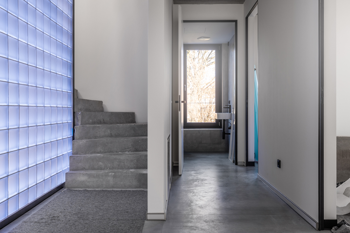 In den Flurbereichen der Villa Pomona kommt mit »Schlüter Designbase QD« ein beleuchtetes Sockelleistenprofil zum Einsatz, das Funktionalität und architektonische Lichtführung elegant verbindet. Das Profil aus eloxiertem Aluminium wurde sichtbar auf der Wand montiert und mit LED Modulen der Serie »Liprotec ES« ausgestattet.