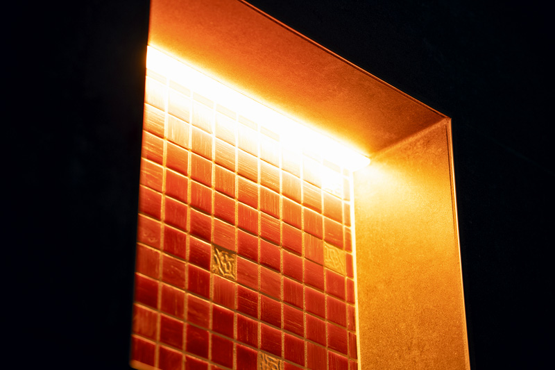 Mit den »Schlüter-Kerdi-Board-NLT«-Sets lassen sich darüber hinaus beleuchtete Wandnischen herstellen. Die vorgefertigten Einbauelemente aus »Kerdi-Board« sind mit LED-Profilen in der Plug & Play-Ausführung ausgestattet, die an verschiedenen Positionen in der Nische eingebaut werden können.