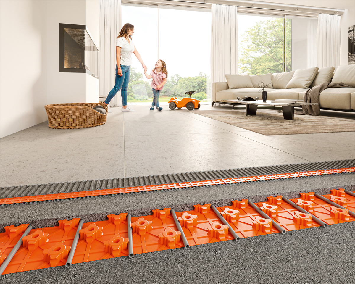 Im Mittelpunkt des BAU-Auftritts werden unter anderem die energiesparenden Flächenheizsysteme des Iserlohner Unternehmens stehen. Gerade in Zeiten der Energieknappheit sowie steigender Preise für fossile Energieträger ist die dünnschichtige Fußbodenheizung »Schlüter-Bekotec-Therm« laut Hersteller gut geeignet, um mit geringem Energieverbrauch effizient für angenehme Wärme zu sorgen. Mit einer Wärmepumpe betrieben, ist die Fußbodenheizung sogar unabhängig von Öl oder Gas. Dank des intelligenten Konstruktionsaufbaus eignet sich das System auch für andere regenerative Energiequellen und aufgrund der geringen Estrichüberdeckung wird bereits beim Einbau eine erhebliche Menge des knappen Rohstoffs Sand eingespart.