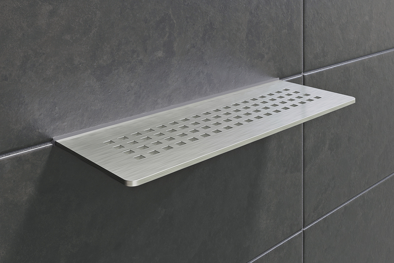 Seit Februar 2021 sind die »Shelfs« in den neuen Designs erhältlich – aus gebürstem Edelstahl oder seit April auch mit Oberflächen aus beschichtetem Aluminium in den »Trendline«-Farben. Damit passen die Ablagen zu unterschiedlichen Fliesen- und Einrichtungsstilen – und zu den entsprechenden Rost- / Rahmenkombinationen für die Schlüter-Entwässerungslösungen »Kerdi-Line« und »Kerdi-Drain«.