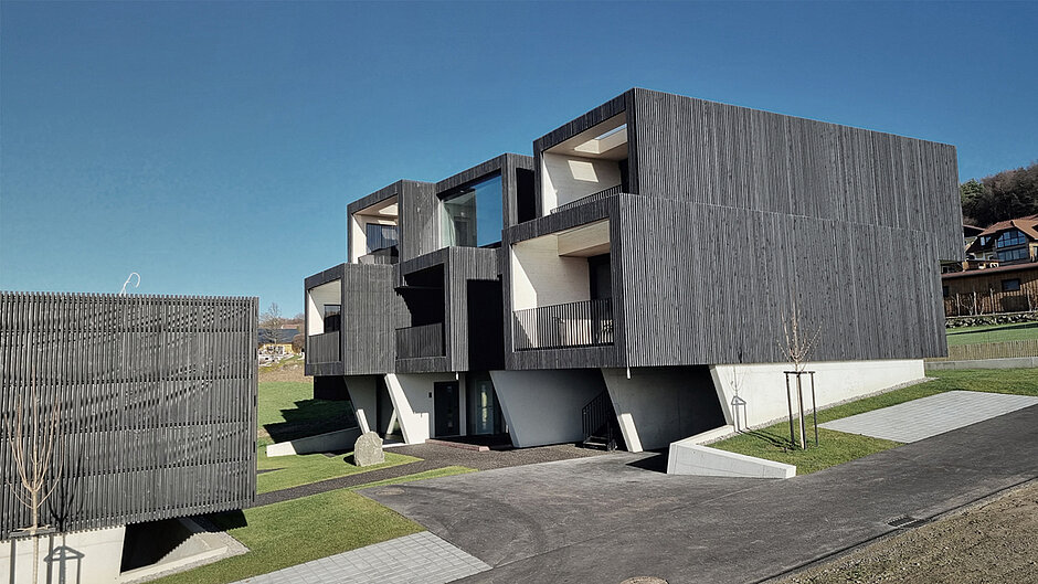 Die Steiermark steht für herrliche Natur, guten Wein und eine lange Holzbautradition. Dieser hat sich auch der Unternehmer Jürgen Tackner verschrieben, der in der Nähe von Bad Gleichenberg zwölf Gäste-Appartements baute, die neben luxuriösem Komfort auch einen grandiosen Blick auf das südoststeirische Thermen- und Vulkanland bieten. Dabei sorgt das Wärmedämmelement »Schöck Sconnex Typ W« dafür, dass nicht nur die gewünschte schlanke Sichtbeton-Ästhetik des Sockelgeschosses, sondern vor allem auch die thermische Trennung zwischen den Stahlbetonbauteilen und der darauf liegenden Holzkonstruktion sicher gelingt.