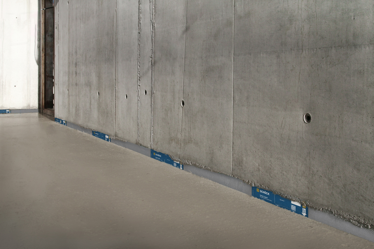 »Im Bereich der Balkone ist das Problem der Wärmebrücken mit Isokorb bereits seit vielen Jahren gelöst. Eine der größten energetischen Schwachstellen im Haus aber ist der Sockelanschluss zur Tiefgarage«, berichtet Florian Lang, Geschäftsführer bei dem für das Energiekonzept verantwortlichen Büro Herz & Lang. Die Ingenieure planten die thermische Hülle nicht wie bei der klassischen Anwendung in der Tiefgarage als Unterdeckendämmung, sondern als Aufdeckendämmung. Im Anschlussbereich der Stahlbetonwände zur Geschossdecke ergaben sich dadurch signifikante Wärmebrücken. »Wir betrachten immer die gesamte Gebäudehülle, denn der Schlüssel zu einer ausgeglichenen Energiebilanzierung liegt in der Gesamtbetrachtung der energetischen Strukturen und der Baukonstruktion. Wir tüfteln viel über Details und sind daher auch ständig auf der Suche nach energetischen Produkten und Neuerungen.« Die effektive Lösung für die Gebäudehülle im Vinzenz Areal fanden sie bei Schöck in den neuen, tragenden Wärmedämmelementen »Sconnex«.