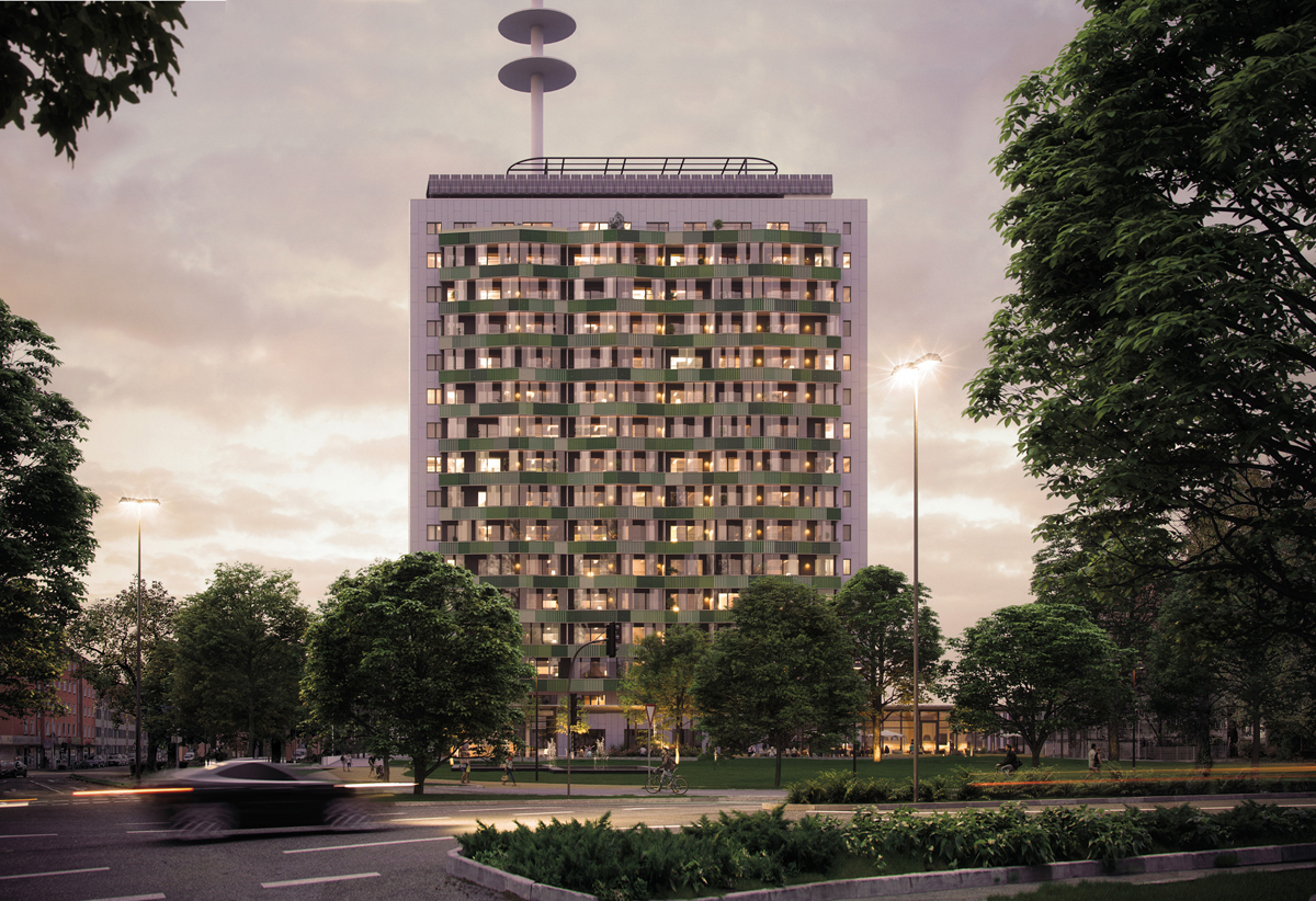 Nach Jahren des nahezu vollständigen Leerstands wird dem Post- und Büroturm aus den 60er Jahren im Konstanzer Stadtteil Petershausen neues Leben eingehaucht. Mit 62 m Höhe ist er nach dem Münster das zweithöchste Gebäude der attraktiven Stadt am Bodensee. Die bundesweit tätige BPD Immobilienentwicklung GmbH, die das rund 11.500 Quadratmeter große Gesamtareal 2017 erworben hat, realisiert hier im Zuge einer Komplettsanierung das Wohnprojekt »Ode Lofts«. 2025 soll das Bauprojekt fertiggestellt sein.