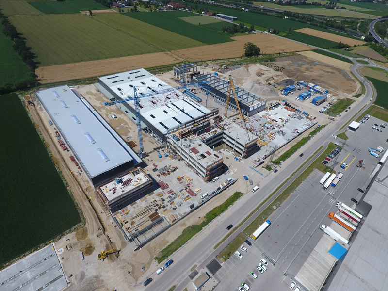 Rund 100.000 Quadratmeter umfasste der Bauplatz, was ungefähr der Fläche von 14 Fußballfeldern entspricht; die bebaute Fläche beträgt circa 40.000 Quadratmeter. Zum Gebäudeensemble gehören neben dem neuen Büro- und Verwaltungsgebäude auch umfangreiche Lagerhallen, ein