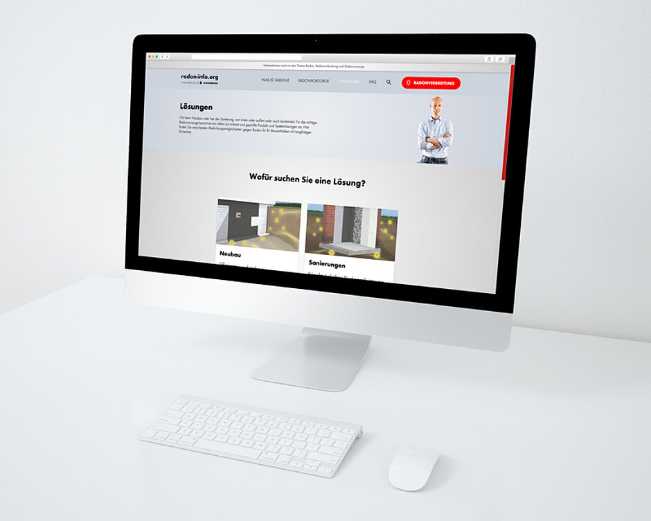 Im Neubau kommen vor allem mineralische (»Aquafin-RB400«) oder bituminöse (»Combidic-2K-Premium«) Abdichtungsprodukte in Kombination mit weiteren radongeprüften Systemkomponenten wie etwa Frischbetonverbund Abdichtungsbahnen (»Aquafin-WM12«) infrage. Bei der Sanierung verhindert eine mineralische Abdichtung (»Aquafin-RB400«) in Kombination mit einer Spezialgrundierung (»Asodur-SG2«) das Eindringen gefährlicher Radongase.