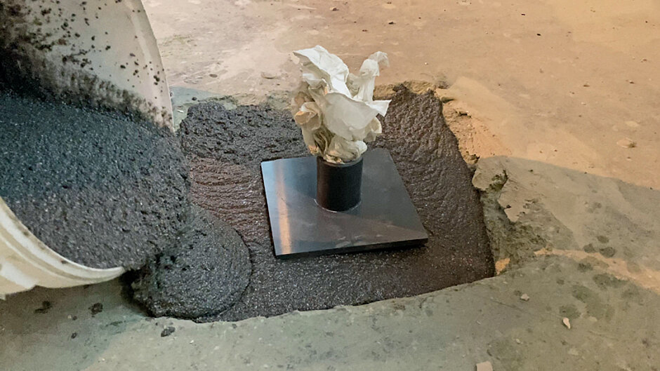 Der Epoxidharzmörtel hält als Ankerverguss zuverlässig Bewehrungsstähle und hoch strapazierte Maschinenbefestigungen – geprüft nach DIN EN 1504-6. Er schützt laut Schomburg sowohl die Maschinen als auch den Boden vor belastenden Vibrationen und fixiert dabei sicher. Seine gute Fließfähigkeit sorgt dafür, dass beispielsweise Maschinen flächig eingebettet werden. Auch Einströmer im Schwimmbad oder bodentiefe Tür- und Fensterelemente können mit »Asodur-EV200« dicht umgossen werden.