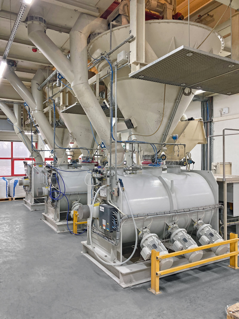 »Asodur-EV200« lässt sich mit entsprechenden Zwangsmischern wie z. B. dem »Collomatic XM2-650« von Collomix oder herkömmlicher Mischtechnik anrühren und haftet auch ohne Grundierung auf feuchten Untergründen oder auf alten Holzdielen. Der Verarbeiter hat ein Zeitfenster von etwa 100 Minuten für die Verarbeitung des angemischten Materials, nach ca. 12 Stunden kann die Fläche überarbeitet werden. Die Eigenschaften sind geprüft nach der »Estrichnorm« DIN EN 13813. Schomburg bietet den 3-komponentigen Epoxidharzmörtel im 30-kg-Kombigebinde an. J