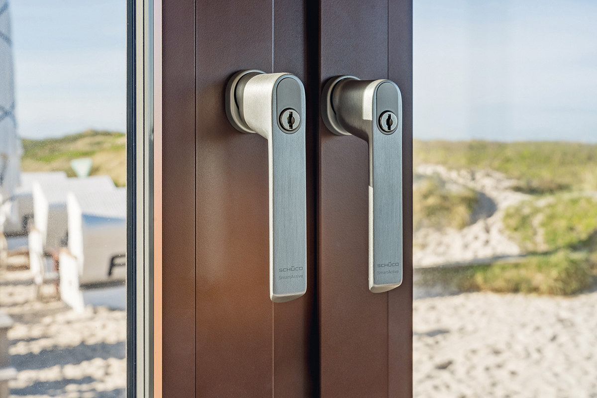 Ausgehend von den vielfältigen Anforderungen fiel die Wahl auf das Fenstersystem »Schüco AWS 75 SI+« in Kombination mit dem Hebe-Schiebesystem »Schüco ASE 80.HI«. Die Konfiguration überzeugt durch ihre filigrane Optik ebenso wie durch Barrierefreiheit und hohen Komfort. Das schlank profilierte Fenstersystem »Schüco AWS 75 SI+« (Super Insulated) ermöglicht einen optimierten Wärmeschutz, das hochwärmegedämmte Schüco Schiebe- und Hebeschiebesystem »ASE 80.HI« (High Insulated) integriert eine niveaugleiche Schwelle, sodass Innen- und Außenbereich fließend und barrierefrei ineinander übergehen. Von diesem Komfort profitieren Gäste und Angestellte gleichermaßen. Verdeckt liegende Beschlagkomponenten unterstreichen das puristische und wertige Design auch im geöffneten Zustand.