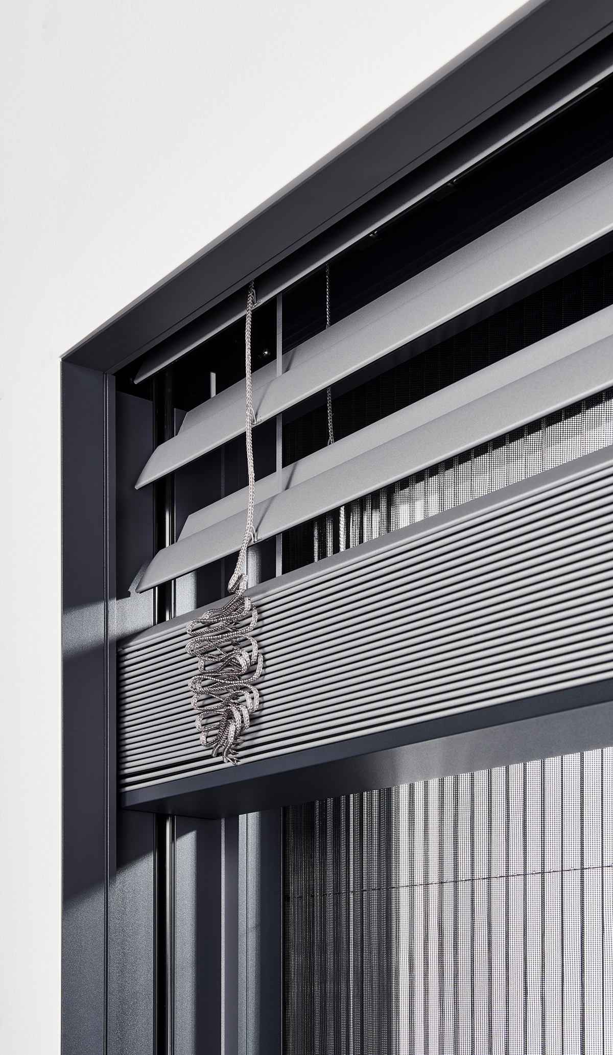 Neben dem Sonnenschutz kann ein Insektenschutz als vertikales Rollo oder als horizontales Plissee installiert werden. Als Bodenabschluss kann das Modul mit einer Designfensterbank, einer Absturzsicherung in Form einer integrierten Glas- oder Geländerausführung oder auch mit einer Nullschwelle mit Entwässerungsrinne (wahlweise mit einer 20-mm-Schwelle) ausgestattet werden. Ein Austausch der Komponenten ist auch im Nachgang jederzeit möglich.