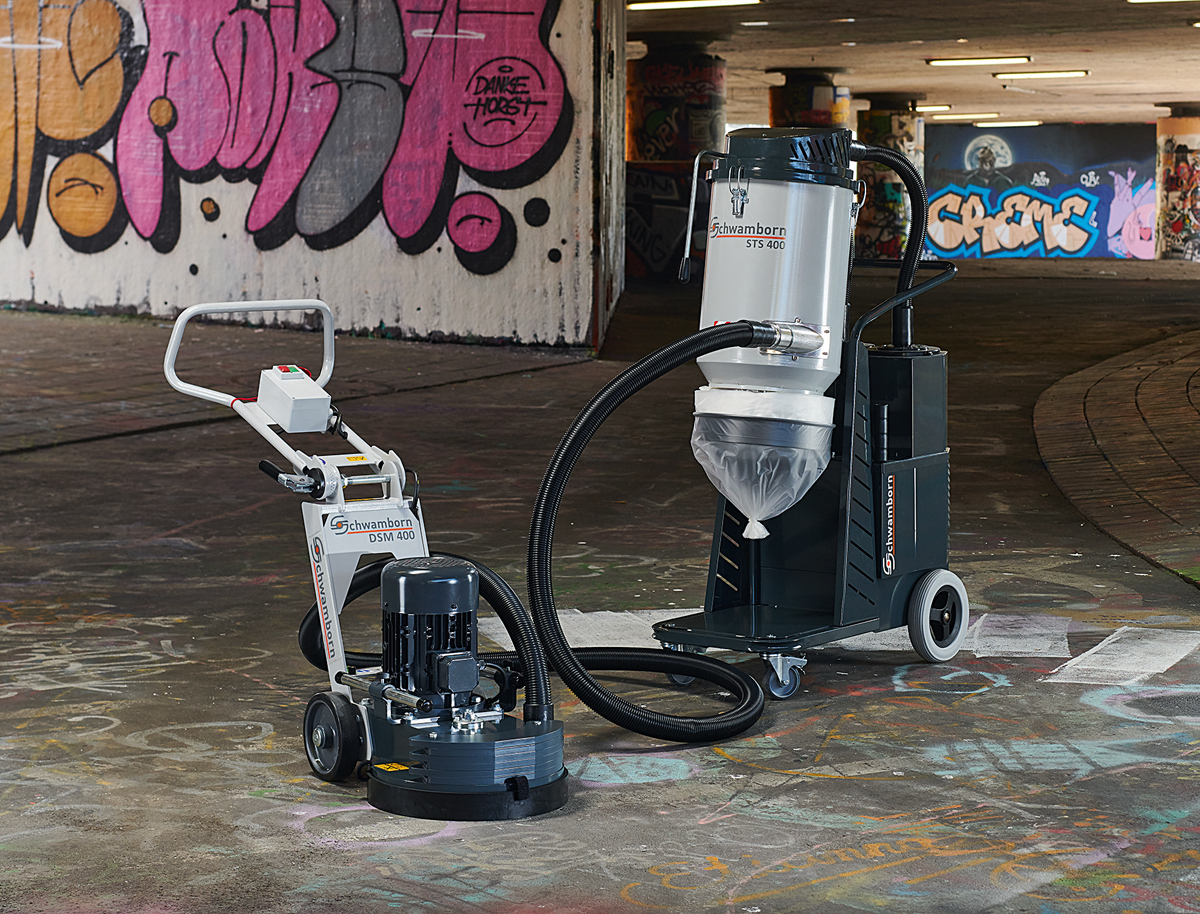 Von der Untergrundvorbereitung mit Tiefenabtrag für Rückbau und Sanierung über das randlose Schleifen mit der »DSM 250« sowie der für mittlere Flächen geeigneten »DSM 400« oder »DSM 530« Hochleistungs-Schleifmaschine bis hin zum Glätten eines neuen Estrichs mit dem Flügelglätter für die STR-Maschinen – Schwamborn bietet für das Fußbodenhandwerk ein abgestimmt auf die jeweiligen Arbeitsschritte optimiertes Programm mit Maschinen und passendem Werkzeug an.
