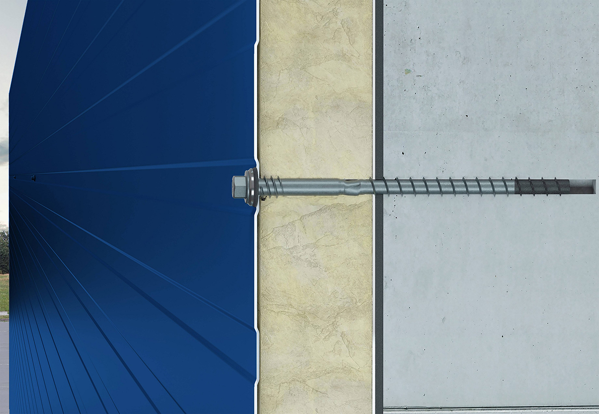 Die gewindefurchende Schraube des Schweizer Herstellers dient der direkten Befestigung von Sandwichelementen an Beton – und das ohne den Einsatz der sonst üblichen einbetonierten Stahlschiene. Während bei der klassischen Montage die exakte Position der Schiene eine zentrale Rolle spielt, gewährleistet der Direktbefestiger MXC ein hohes Maß an Flexibilität: Denn die Positionierung der Schraube ist im Montageprozess variabel. Auch Erweiterungs- und Sanierungsarbeiten können auf diese Weise unkompliziert ausgeführt werden – die alte Schiene muss nicht in die Planung einbezogen werden.