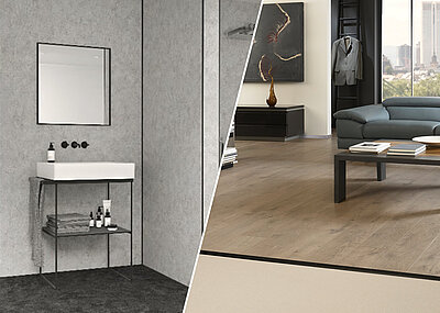Der Profi weiß: Mit direkt bedruckten, hochdruckverpressten Wandplatten aus Vinyl oder HPL lassen sich mit vergleichsweise geringem Aufwand moderne Badkonzepte realisieren. Die Vorteile: in der Regel kürzere Renovierungszeiten, eine große Dekorauswahl, häufig niedrigere Kosten sowie deutlich weniger lästiger Bauschmutz durch das Entfernen der Altbeläge, denn die Platten werden direkt auf den Altfliesen montiert. Die Schwachstelle des Systems: Die Dimensionierung der Platten erschwert das saubere Arbeiten an den Stößen und Kanten, die Gefahr der Schimmelbildung im Feuchtbereich steigt. Hinzukommt, dass große Flächen gerne eintönig und trist wirken. Daher hat Parkettfreund speziell für diese Anwendung Design-Wandprofile entwickelt. Die 1- und 2-teiligen Profilsysteme ermöglichen eine exakte Justierung auf die benötigte Aufbauhöhe. Das Sortiment umfasst Profile für Innen- und Außenecken, Verbinder und Abschlussprofile in drei Metallfarben – wie beispielsweise das sehr elegante „silber glanz“ – sowie in der pulverbeschichteten Variante „supreme matt schwarz“. Die Maße von 3 mm bis 9,5 mm sind auf die gängigen Plattenstärken abgestimmt. Mit den insgesamt 72 Parkettfreund-Profiltypen können Badrenovierungen mit modernem Look professionell, sauber, schnell und kostensparend realisiert werden.