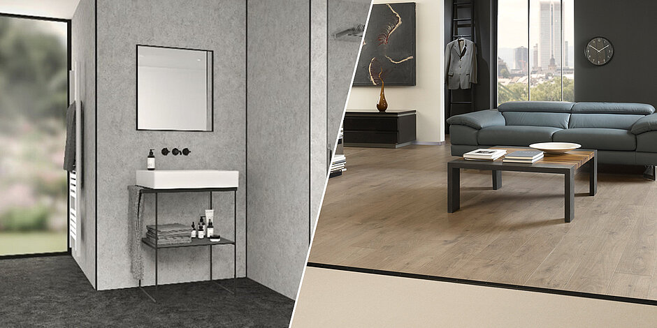 Anfang des Jahres kam das pulverbeschichtete zweiteilige Wand-Clip-Profilsystem »F16« mit einem Anwendungsbereich von 3 bis 5 mm hinzu. Auf Kundenwunsch kann Parkettfreund praktisch alle Profile seines Sortiments als Manufaktur-Artikel pulverbeschichten. Mehr als 90 schwarz matt pulverbeschichtete »F16«- (RAL9005) und schwarz eloxierte »F17«-Profillösungen hat Parkettfreund in seiner »Midnight Edition« – für praktisch alle Verarbeitungssituationen mit Vinyl- und Hartböden die passende.