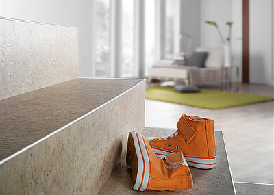 Die Montage ist komfortabel und zeitsparend: Das Basis-Profil wird mit Torx-Schrauben im Boden verankert oder mit einem geeigneten Montagekleber verklebt, dann der Bodenbelag angepasst. Anschließend setzt der Fachmann das Top-Profil auf. Durch die patentierte 3-Punkt-Verzahnung mit Kontersteg werden Basis- und Top-Profil solide miteinander verbunden. Sowohl die Anpassungsprofile als auch die Übergangs- und Abschlussprofile sind in aktuellen Längen von 1 m, 2 m und 3 m lieferbar.