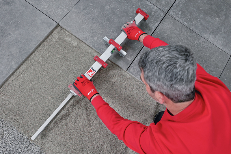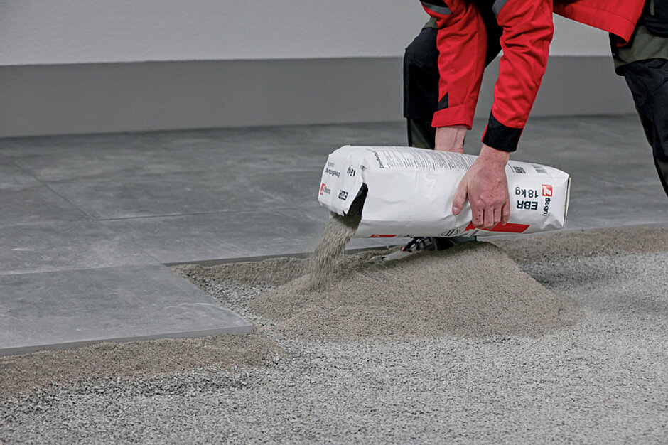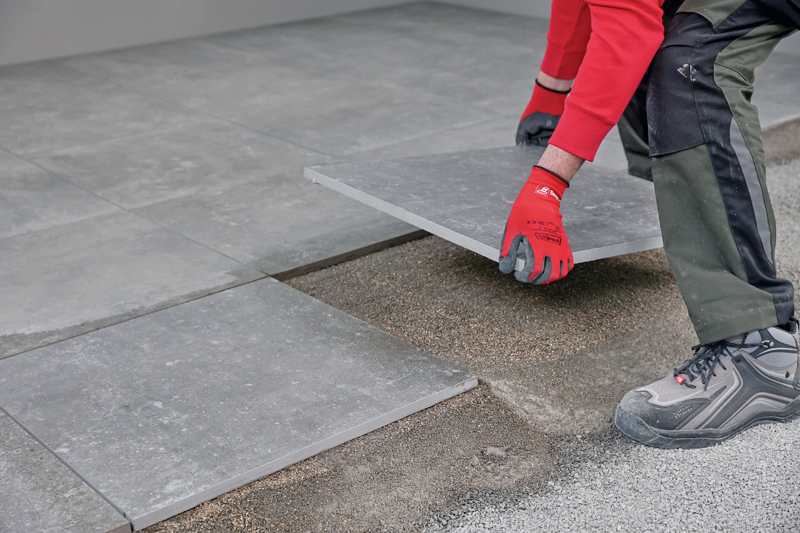 »Die neuartige ›EasyLay‹-Bindemitteltechnologie verfügt über spezielle Leichtzuschläge, die das Saugverhalten so begünstigen, dass die ›EasyBettung‹ komplett über das Wasser aktiviert wird, das über die Fugen eintritt«, erklärt Endrit Imeri, Entwicklungstechniker Mineralische Mörtelsysteme bei der Sievert Baustoffe. Die Fugen müssen dabei mindestens fünf Millimeter breit sein, beim Verlegen von Platten darf die kurze Kantenlänge höchstens 80 cm betragen.