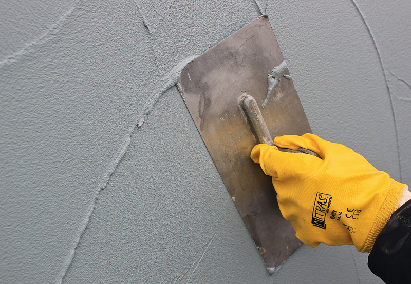 Zur Verarbeitung des Produkts wird zunächst eine homogene, spachtelfähige Schlämme hergestellt. Hierfür müssen die Pulver- sowie die flüssige Komponente mindestens drei Minuten miteinander vermengt werden. Der Auftrag erfolgt anschließend mit einer Bürste oder Glättkelle. Zur Erzielung einer gleichmäßig strukturierten Optik kann die Oberfläche mit einer weichen Bürste verschlichtet werden. Nach Angaben des Hersteller schütze die Beschichtung innerhalb kürzester Zeit wirksam. Bereits nach fünf Stunden sei sie regenfest. J