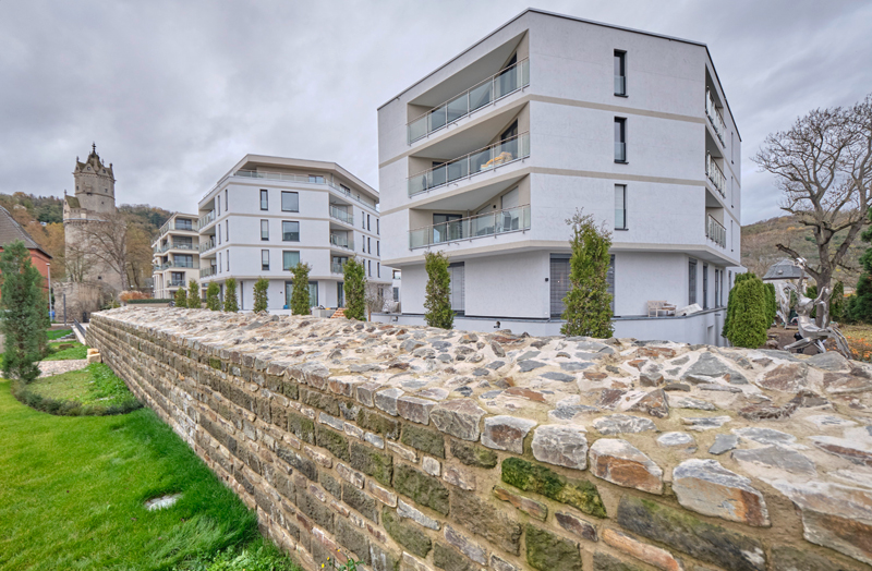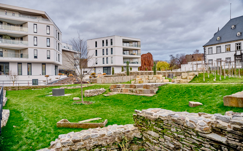 In der Tat: Die drei Turmhäuser dienen als Verbindungselemente zwischen dem Rheinufer auf der einen Seite und dem »Römer-Park« auf der anderen Seite, der direkt an die Wohngebäude und das Hotel angrenzt und eine besondere Bedeutung für Andernach hat. Schließlich wurde dort vor über 2 000 Jahren Andernach von den Römern gegründet.