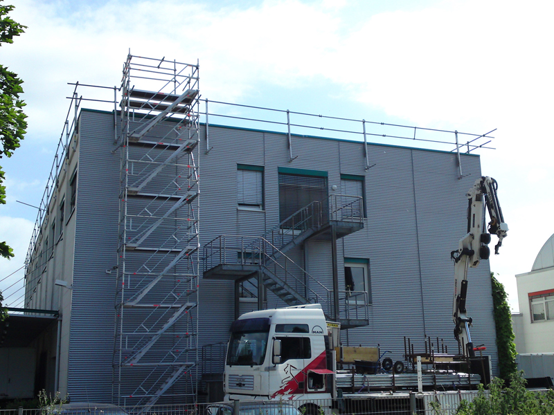 Sifatec Flachdach-Absicherungen wurden über lange Jahre hinweg in der Praxis entwickelt und erprobt, bevor der Dachdecker Karl-Josef Simon ein komplettes Dienstleistungspaket um dieses praktische Sicherungssystem schnürte. Es beinhaltet die projektbezogene Planung, Statik, Transport und Logistik, Materialvorhaltung während des Abwicklungszeitraums sowie den Aufbau und Abbau mit eigenem Personal an bundesweiten Hochbauprojekten. J