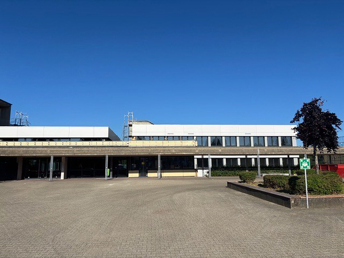 Im Jahr 2025 begann die Stadt Monschau mit der Einrichtung der Baustelle für die Dacharbeiten. Der alte Dachaufbau verfügte über eine langlebige 10 cm dicke Foamglas-Kompaktdachlage, die mit der Dachhaut verschweißt wurde. Den Abschluss bildete eine Betondecke. Die energetische Dachsanierung der insgesamt rund 2.600 m² großen Dachfläche beinhaltete die Herstellung eines komplett neuen Dachaufbaus nach geltender EnEV als Warmdachkonstruktion mit entsprechenden Aufbauten und Systemen für Entwässerung, Technik, Wärmepumpe und aufgeständerte Photovoltaikanlage.