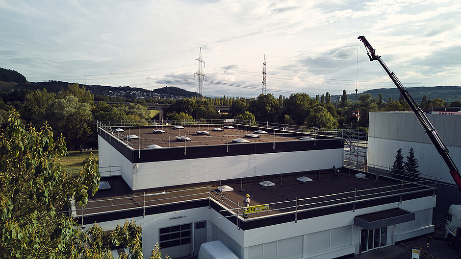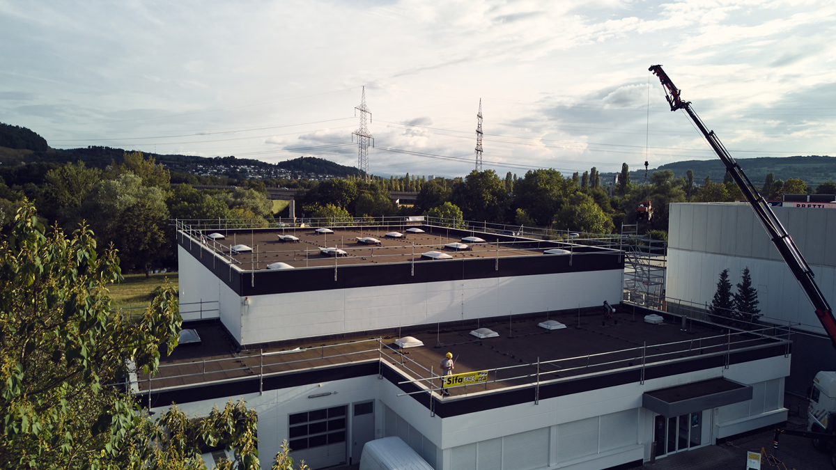 Die vorausgehende umfassende Ausführungsplanung gewährleistete einen zügigen und sicheren Baustellenbetrieb. Weitere Vorteile: Die Gebäudeeingänge, Fenster und Tore blieben frei von jeglichen Beeinträchtigungen. Dazu bot Sifatec mit geprüften und patentierten temporären Absturzsicherungssystemen ein Maximum an Arbeitssicherheit, mit denen das Gefährdungspotenzial während der Sanierungsarbeiten erheblich verringert wurde. Die Gesamtheit all dieser Leistungen macht Sifatec nach eigenen Angaben zum Partner der Wahl für Flachdach-Baustellen.