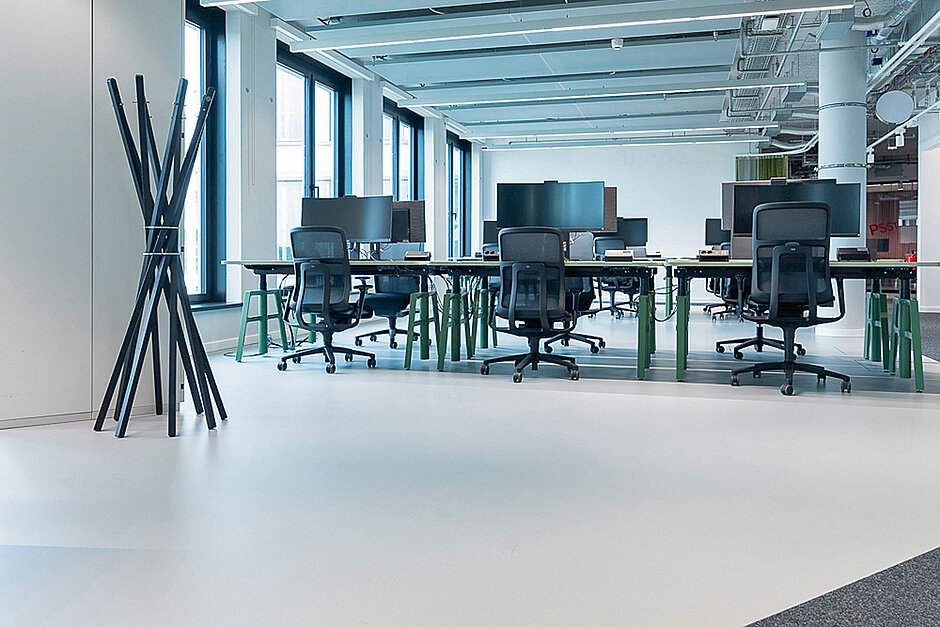 Das Digitalunternehmen Scout24 ist einer der Hauptmieter im ersten deutschen Edge-Bürogebäude. Auf 2 800 m² seiner Büroflächen und Sozialräume entschied sich Scout24 für das Bodenbeschichtungssystem »Sika ComfortFloor PS-64«. Es erfüllt die geforderten Eigenschaften an eine makellose Optik und maximalen Nutzungskomfort.
