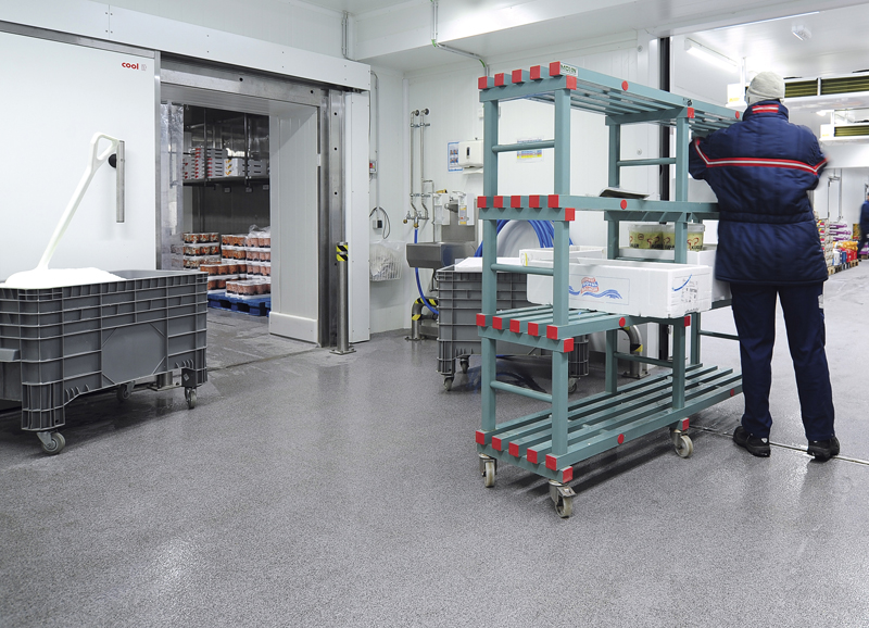 Als ganzjährig nachgefragte Bodenbeschichtung für Minustemperaturen, nämlich die Anwendungen in Tiefkühl- und Kühlräumen, hat Silikal das »System D: Cold Room« im Portfolio. Diese schnellhärtende, dekorative und flexible Methylmethacrylat-Beschichtung ist mechanisch stark belastbar, kann – wenn gewünscht – mit Rutschhemmung ausgestattet werden und verspricht wie alle MMA-Böden eine hygienische und fugenlosen Oberfläche, die sich leicht reinigen lässt. J