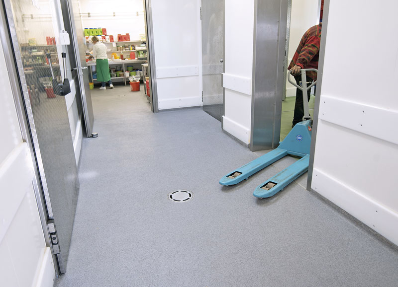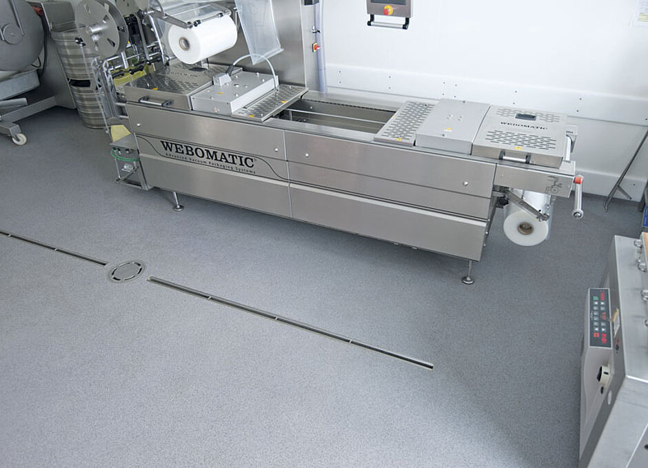 Die Bodenbeschichtungen wurden durch den erfahrenen Fachbetrieb Seitz + Kerler aus Lohr am Main ausgeführt. Die Verlegung in den Nassräumen erfolgte im Gefälle zu den vorhandenen Edelstahlrinnen und den Bodenabläufen mit einer entsprechend dichten Anbindung an diese Entwässerungstechnik. Darüber hinaus gewährleistet die rutschfeste Oberfläche der Beschichtung ein hohes Maß an Sicherheit am Arbeitsplatz.